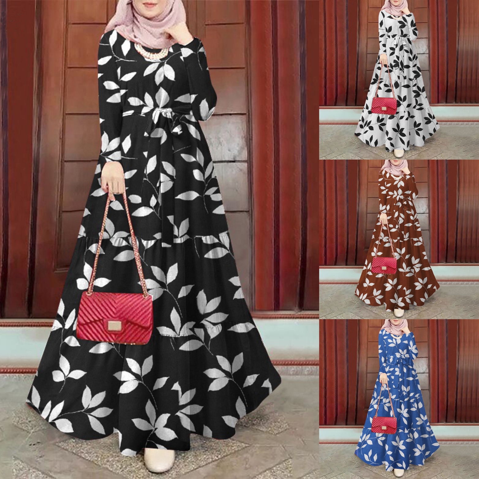 Style:Leisure,Bohemian,Retro,Europe,Tiered Dress,Muslim Dress